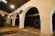 Anexo a la vivienda, se desarrolla el núcleo de la bodega original compuesto consecutivamente por lagar, nave de la viga y bodega, definiendo una estructura de naves perpendiculares a la fachada que están construidas mediante muros de carga y cubierta de cerchas de madera con cubrición de teja a varias aguas.
