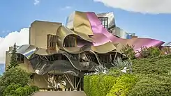 ![]() Vista exterior del Hotel Marqués de Riscal, en la Ciudad del Vino. | ||