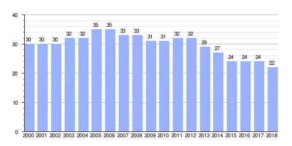 Gráfica de evolución demográfica de Boimazán entre 2000 y 2018 |