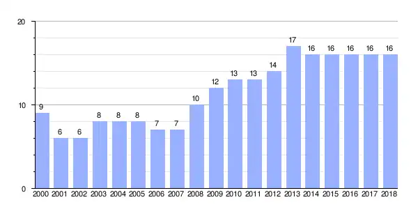 Gráfica de evolución demográfica de Boimil entre 2000 y 2018 |