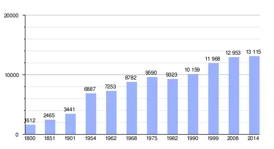 Gráfica de evolución demográfica de Bois-Guillaume entre 1800 y 2014 |