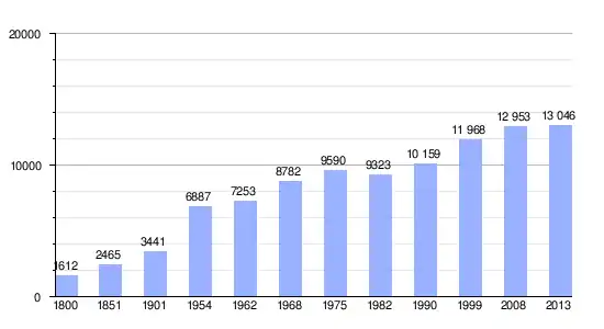 Gráfica de evolución demográfica de Bois-Guillaume-Bihorel entre 1800 y 2013 |