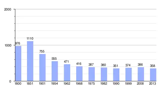 Los datos demográficos contemplados en este gráfico de la comuna de Boissy-Maugis[3] se han cogido de 1800 a 1999 de la página francesa EHESS/Cassini, y los demás datos de la página del INSEE.[4]
