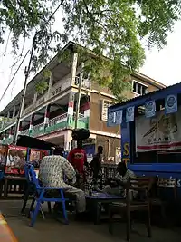 Un grupo de hombres almorzando en un restaurante en Bolgatanga.