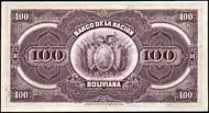 En 1945 en gobierno de Gualberto Villarroel emitió billetes en cortes de 5, 10, 20, 50, 100, 500, 1000, 5000 y 10000 bolivianos, en 1946 se cambió el diseño de los cortes de 100, 500, 1000, 5000 y 10000 bolivianos pero se mantuvo los mismos colores para no confundir a la población.