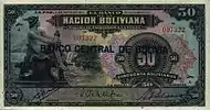 En 1951 y 1952 se sobre sellaron los billetes de un boliviano de la tercera emisión de 1928 y los de 5 y 10 de 1945 con las leyendas: EMISIÓN DE 1951 y EMISIÓN DE 1952..