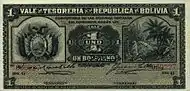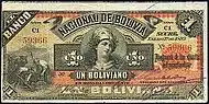 En 1903, el Banco Tesoro introdujo notas en denominaciones de 50 centavos, 1, 5, 10 y 20 bolivianos.