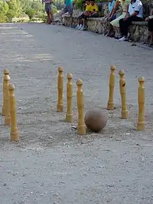 - Las bolas serán dos, también de encina seca, y con diámetro de QUINCE centímetros.