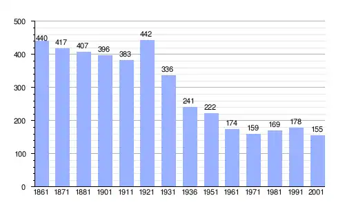 Gráfica de evolución demográfica de Bolognola entre 1861 y 2001 |