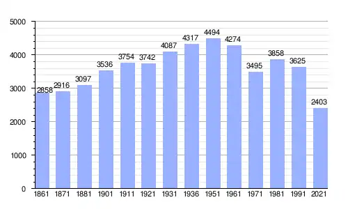 Gráfica de evolución demográfica de Bolotana entre 1861 y 2021 |
