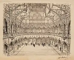 Después de que un segundo incendio en 1858 destruyera una vez más el edificio, las autoridades de la ciudad de Amberes organizaron en dos ocasiones un concurso de diseño en el que había que preservar el antiguo concepto. El edificio actual fue finalmente completado en 1872 por el arquitecto Joseph Schadde. Se trata de una notable combinación del estilo neogótico y de técnicas revolucionarias, en particular la construcción metálica para el revestimiento del interior. El edificio albergó la Bolsa de Amberes (una verdadera bolsa de valores) desde 1872 hasta su fusión con la Bolsa de Bruselas en 1997.[7]