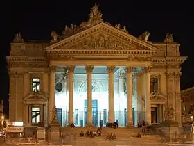 ![]() Edificio de la Bolsa de Bruselas de noche. | ||