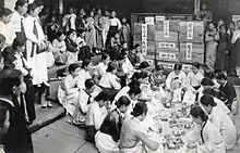 Mujeres coreanas poniendo artículos de confort en bolsas de confort