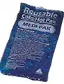 A diferencia de las compresas frías instantáneas, que se almacenan a temperatura ambiente y se enfrían rápidamente cuando es necesario para un solo uso, las compresas frías calientes reutilizables son simplemente un material que mantiene bien su temperatura, por lo que se almacenan en un congelador o se calientan en agua o en un recipiente. horno de microondas para alcanzar la temperatura deseada. La primera compresa caliente y fría se introdujo en 1948 con el nombre Envase Caliente o Frío y se podía enfriar en un refrigerador o calentar en agua caliente.[5] La primera compresa fría reutilizable que se podía calentar en agua hirviendo o en un horno de microondas se patentó por primera vez[6] en 1973.