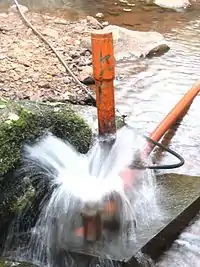 El agua puede proceder de un manantial, arroyo o río y debe ser conducida al ariete hidráulico mediante un conducto (hierro galvanizado, PVC, PPP, etc), cuyo diámetro dependerá del caudal utilizado.