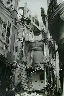 Efectos del bombardeo de las calles de Cádiz por parte del destructor republicano Almirante Valdés.