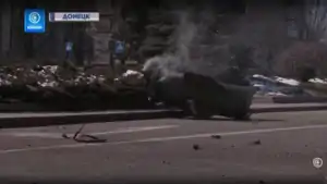 Las autoridades ucranianas culparon a Rusia por el ataque, indicando que fue una bandera falsa organizada para cubrir la muerte de civiles por parte de las fuerzas rusas en Járkov, Irpín y Mikolaiv. La explosión parecía haber ocurrido a partir de un objeto estacionario, como un coche bomba, debido al patrón de explosión y la falta de escombros de misiles.[3] Las autoridades de la rebelde República Popular de Donetsk dijeron que el ataque fue realizado por el sistema de misiles tácticos Tochka-U utilizado por las fuerzas ucranianas, que fue derribado por las Fuerzas Armadas de la RPD.[4]