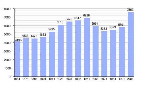 Gráfica de evolución demográfica de Bomporto entre 1861 y 2001 |