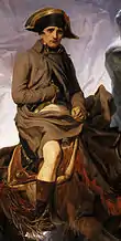 El contraste entre la representación de Jacques-Louis David de la misma escena (de Napoleón atravesando los Alpes camino a Italia), que fue un retrato halagador solicitado por el rey de España[25][n. 5] para Napoleón[26] (como regalo), y la representación de Delaroche en Bonaparte cruzando los Alpes es evidente.