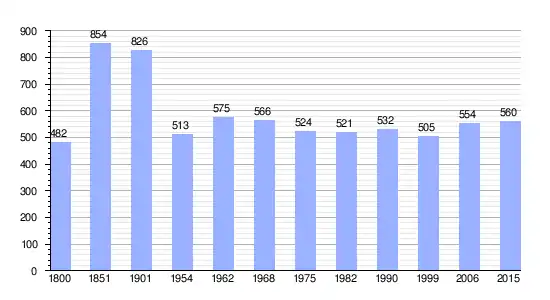 Los datos demográficos contemplados en este gráfico de la comuna de Bonnœuvre[4]se han cogido de 1800 a 1999 de la página francesa EHESS/Cassini, y los demás datos de la página del INSEE.[5]