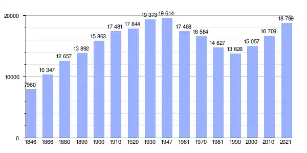 Gráfica de evolución demográfica de Boom entre 1846 y 2021 |