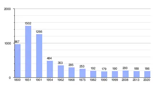 Gráfica de evolución demográfica de Bordes-Uchentein entre 1800 y 2020 |