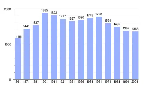 Gráfica de evolución demográfica de Borgo San Martino entre 1861 y 2001 |