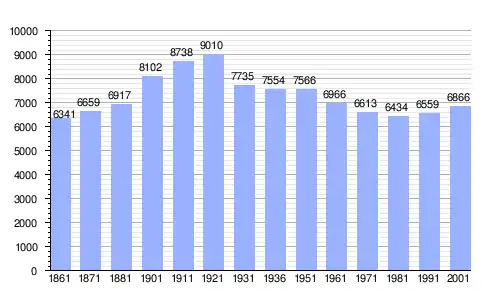 Gráfica de evolución demográfica de Borgonovo Val Tidone entre 1861 y 2001 |