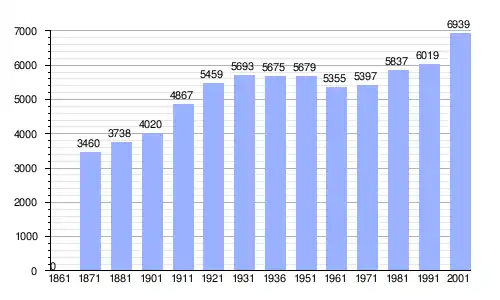 Gráfica de evolución demográfica de Borgoricco entre 1861 y 2001 |