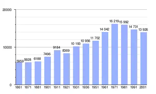 Gráfica de evolución demográfica de Borgosesia entre 1861 y 2001 |