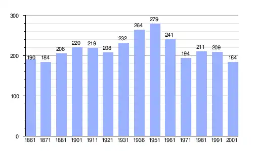Gráfica de evolución demográfica de Boroneddu entre 1861 y 2001 |