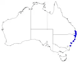 Crece en suelos arenosos, húmedos y cálidos al norte de Port Stephens en Nueva Gales del Sur y también en Queensland.[1]