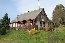 Se encuentra ubicada al noroeste de la región, cerca de la fuente del río Elba, en la zona de las montañas de los Gigantes (Sudetes occidentales) y de la frontera con Polonia y la región de Liberec.[1]