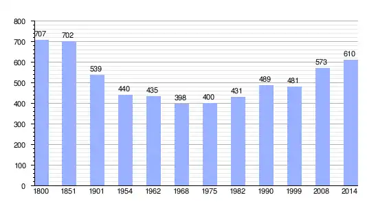 Los datos demográficos contemplados en este gráfico de la comuna de Bosguérard-de-Marcouville[4] se han cogido de 1800 a 1999 de la página francesa EHESS/Cassini, y los demás datos de la página del INSEE.[5]
