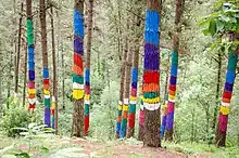 El bosque de Oma (en euskera: Omako basoa) es una obra artística creada por el escultor y pintor Agustín Ibarrola entre los años 1982 y 1985[1] y que se puede encuadrar dentro de la tendencia contemporánea del Land Art. Dicho bosque está situado en la Reserva de la Biosfera de Urdaibai,[1] y consiste en un grupo de árboles en los que se han realizado pintadas y que -en el conjunto de varios troncos y mirando desde determinadas posiciones- componen diferentes figuras geométricas, humanas y animales.[2] La obra se encuentra ubicada en una de las laderas del valle de Oma, en la localidad de Kortezubi, cerca de la cueva de Santimamiñe, no muy lejos del antiguo domicilio del artista.[1][2][3] El pintor y escultor Agustín Ibarrola concibió el bosque animado o bosque de Oma como una muestra de la relación entre la naturaleza y la presencia humana.