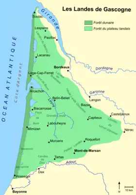 ![]() Mapa de las Landas de Gascuña. | ||