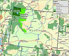 ![]() ![]() Bosque Nacional Shoshone Ubicación en Wyoming. | ||
