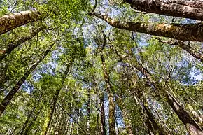 ![]() Haya plateada (Nothofagus menziesii) en el parque nacional de los Lagos Nelson. | ||