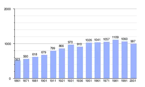 Gráfica de evolución demográfica de Bossico entre 1861 y 2001 |