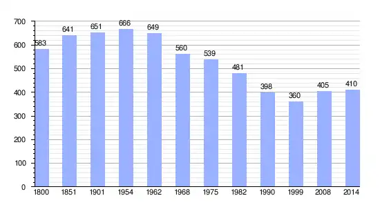 Gráfica de evolución demográfica de Bouillé-Saint-Paul entre 1800 y 2014 |
