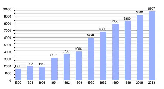 Gráfica de evolución demográfica de Boulazac-Isle-Manoire entre 1800 y 2013 |