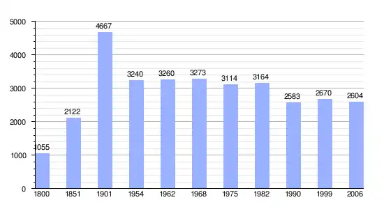 Los datos demográficos contemplados en este gráfico de la comuna de Bourg-de-Thizy[4] se han cogido de 1800 a 2006 de la página francesa EHESS/Cassini.