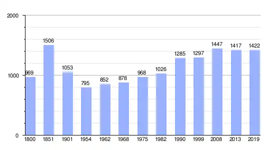 Gráfica de evolución demográfica de Bourgogne-Fresne entre 1800 y 2019 |
