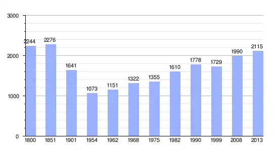 Gráfica de evolución demográfica de Bourgs-sur-Colagne entre 1800 y 2013 |