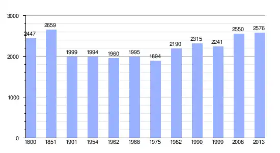 Gráfica de evolución demográfica de Bourgvallées entre 1800 y 2013 |