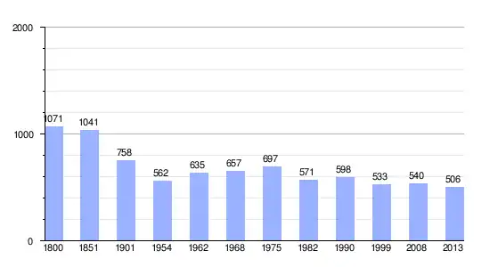 Los datos demográficos contemplados en este gráfico de la comuna de Bourmont[4] se han cogido de 1800 a 1999 de la página francesa EHESS/Cassini, y los demás datos de la página del INSEE.[5]