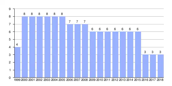 Gráfica de evolución demográfica de Bouzoa entre 1999 y 2018 |