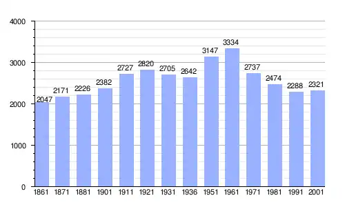 Gráfica de evolución demográfica de Bovegno entre 1861 y 2001 |