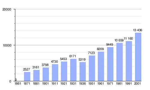 Gráfica de evolución demográfica de Bracciano entre 1861 y 2001 |