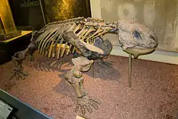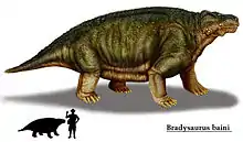 Bradysaurus es un género extinto de reptil pareiasaurio primitivo, cuyos fósiles se han encontrado en la Zona faunística de Tapinocephalus (edad del Capitaniense) en la zona del Karoo en Sudáfrica. Junto a los dinocéfalos de tamaño similar, Bradysaurus constituía la megafauna de herbívoros del Pérmico Medio. En vida serían animales lentos y torpes, que desarrollaron una cobertura de escudos óseos para protegerse de sus depredadores, los gorgonopsios.